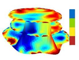 图例:3D图像显示一个蓝色的高导电区域,这个区域的真菌生长比较活跃。 |