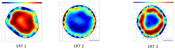 ERTS 的主要方面是高和低的导电区域的分布。你要去观察哪里的电阻比较高哪里的比较低。这个信息需要与那些特定物种的健康的树木正常的电阻分布作对比。每个物种都有一个典型的电阻(水分、湿度)分布。到目前为止,我们已经辨别了树木中三种典型的电阻率分布: