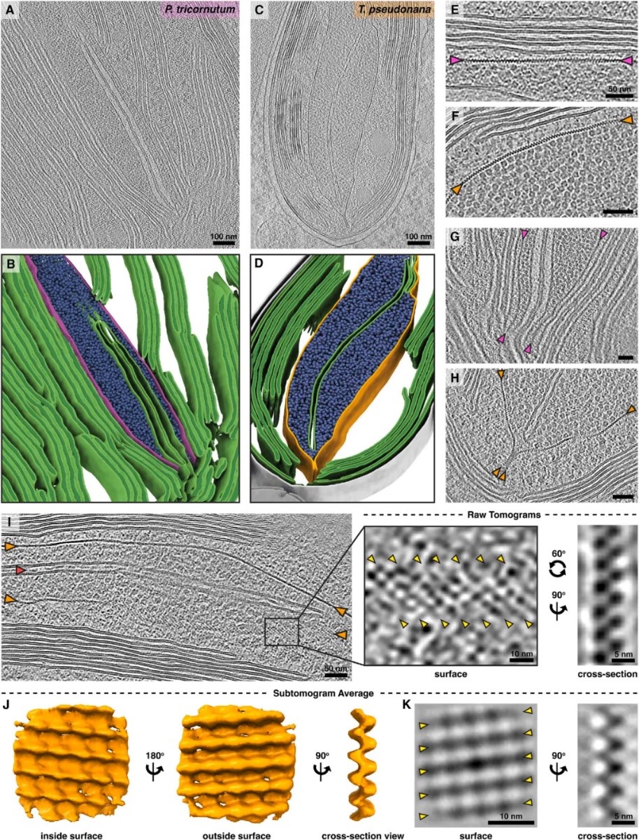 图3硅藻细胞中PyShell蛋白的原位冷冻电镜断层扫描图像