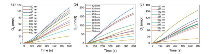为了阐明是PC材料的慢光子效应提高了光合色素的捕光能力,作者在不同的单色光照射下测量了不同系统的OER(图3d和图4)。结果表明,PC材料大大提高了光合色素在相应的慢光子带内的捕光能力,从而提高了光合活性。