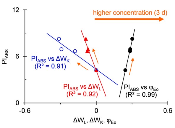 图6 PIABS与ΔWL、ΔWK和φEo的线性相关性分析