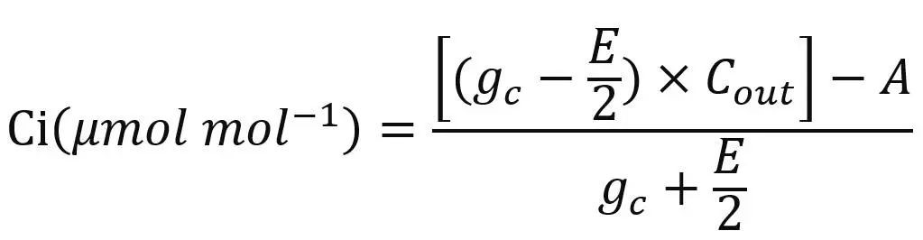 5)使用新计算出的实际净光合速率及其它参数(CO2a、gs和E重新计算真实胞间CO2浓度(Ci