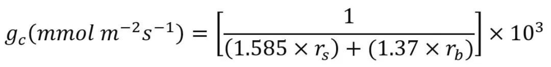[1.585为CO2H2O在空气中的扩散率;1.37CO2H2O在边界层中的扩散率;rs=1/gs;rb为边界层阻力]