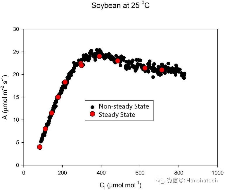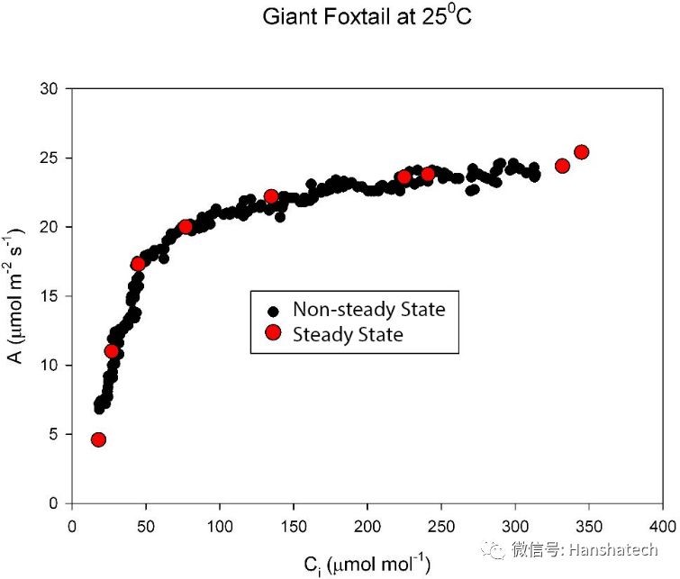 ·      黑点:非稳态高速A/Ci快速响应曲线