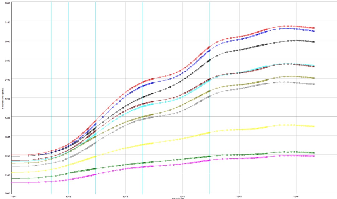 洒金桃叶珊瑚不同部位原始OJIP曲线(曲线由高到低一次为绿色部位至黄色部位)